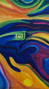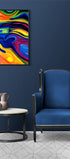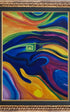 A vivid field of saturated color flows across the canvas in layered waves, echoing the luminous intensity of black light posters and the visual language of a different time. The forms shift between abstraction and suggestion, hinting at a presence within the movement - something remembered rather than clearly seen.